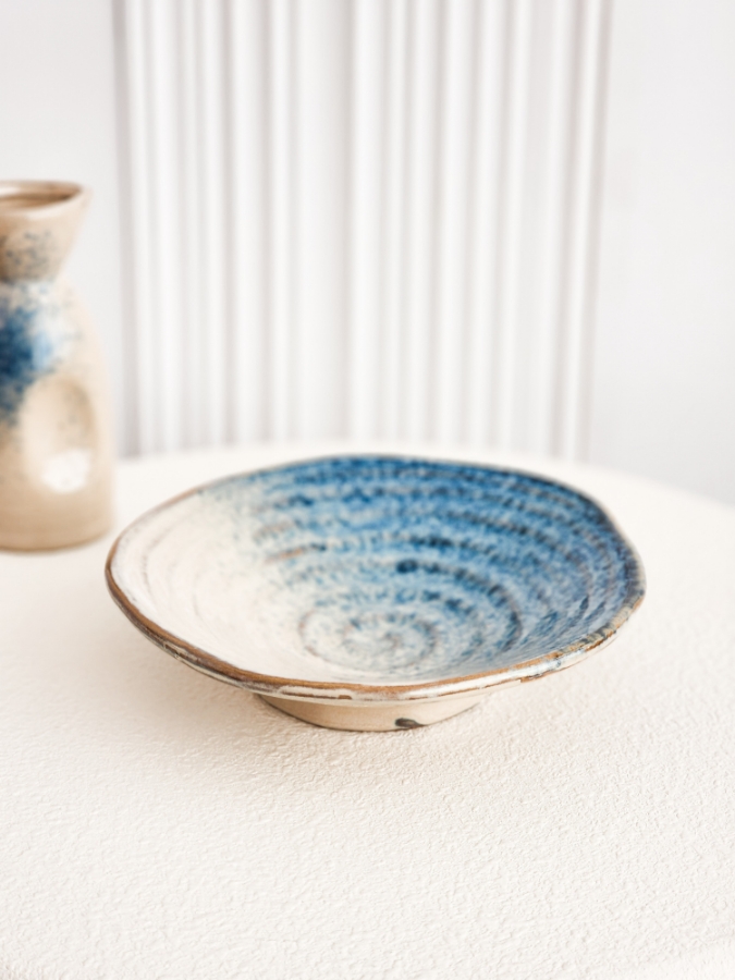 صحن بيج موشح ازرق مع قاعدة