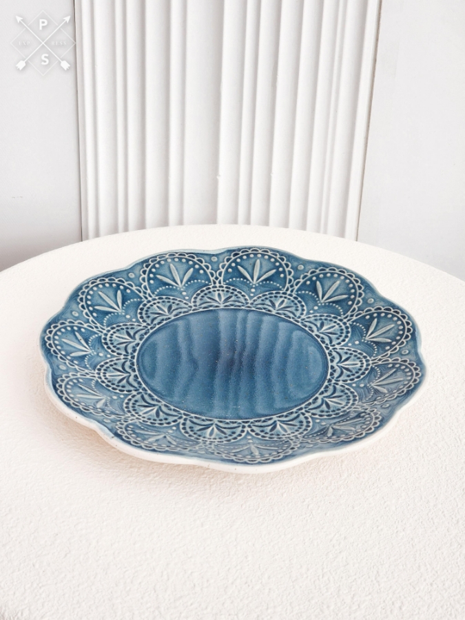 صحن سيراميك منقش لون كحلي