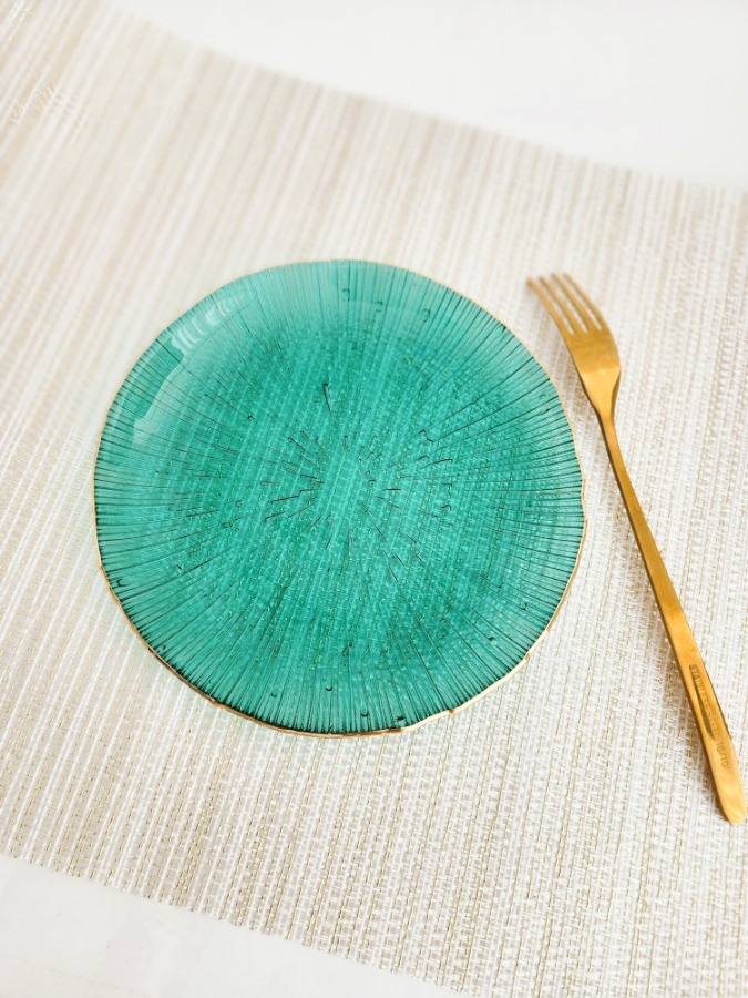 صحن مائدة زجاجي صغير باللون الاخضر قطر ١٦سم
