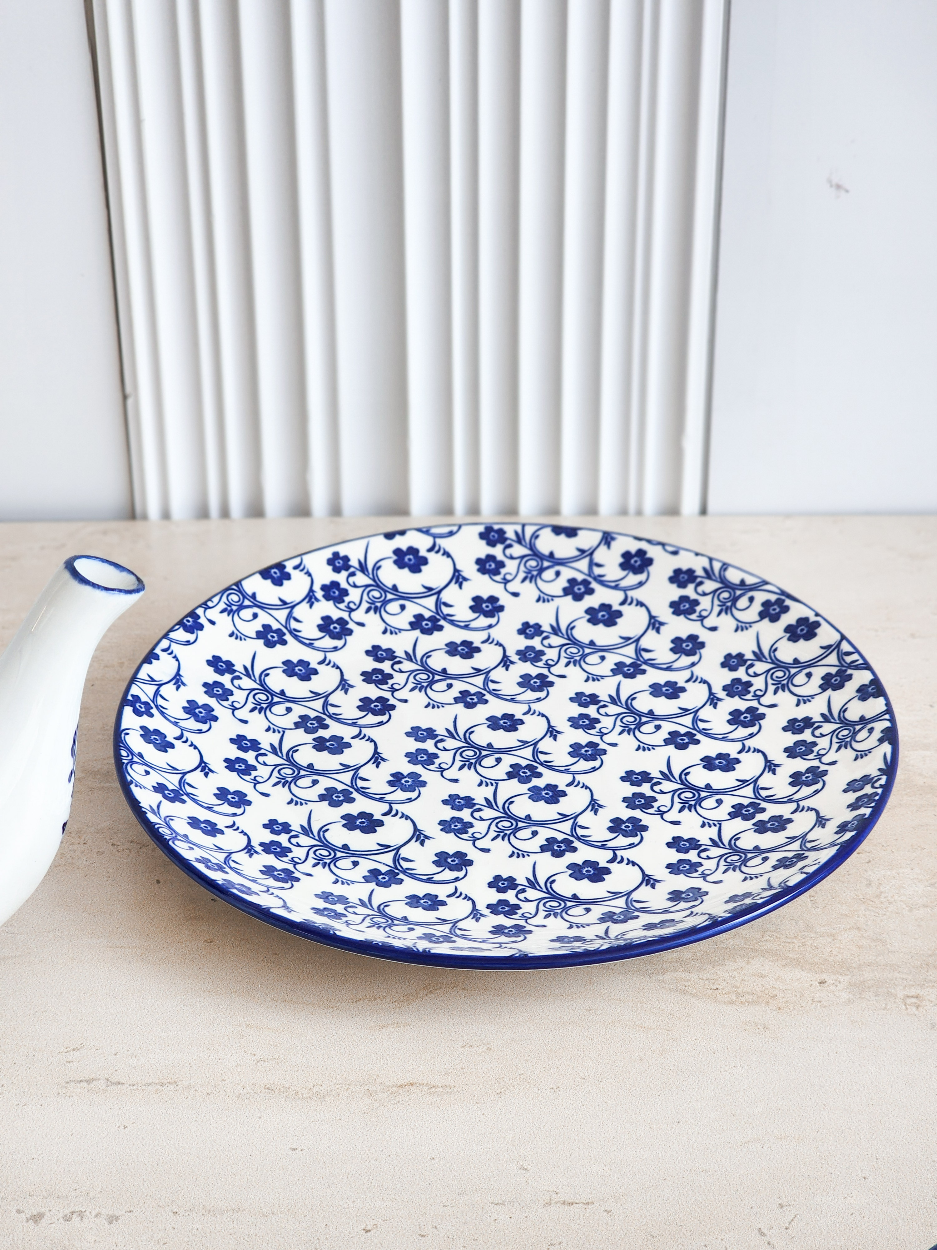 صحن مزخرف ابيض مع ازرق