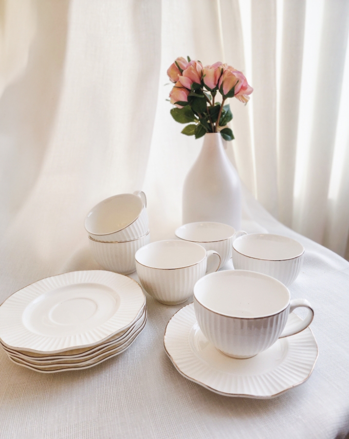 طقم فناجين شاي باللون الابيض ٦ قطع