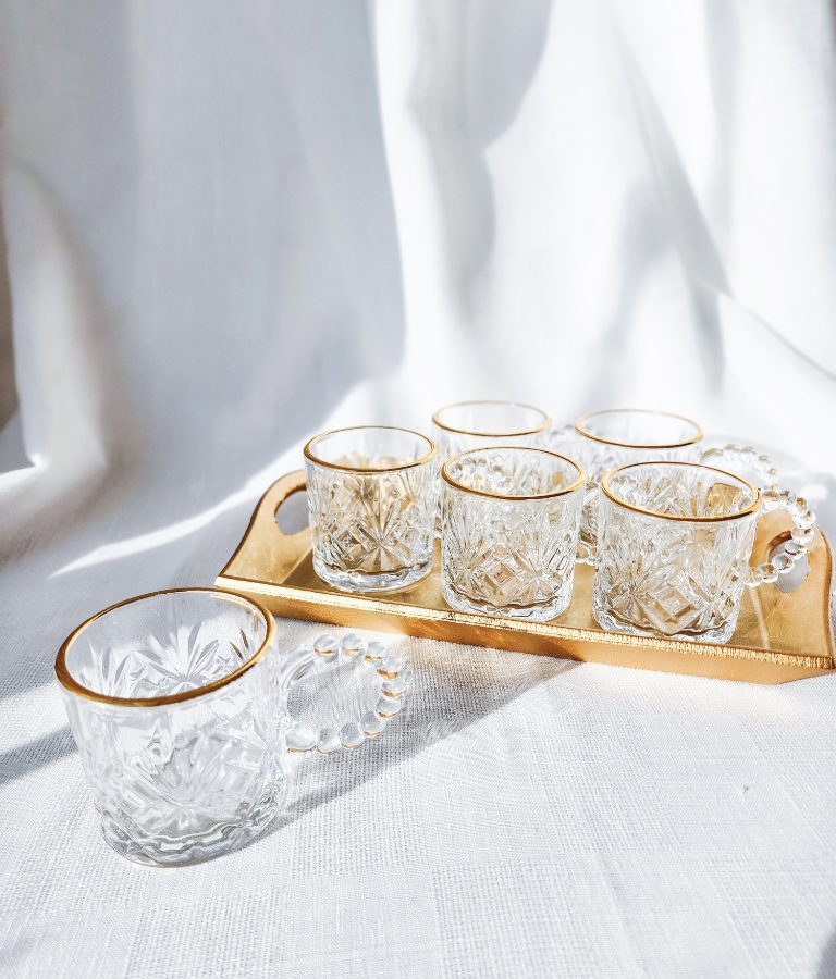 طقم فناجين قهوة مزخرف شفاف 6 قطع