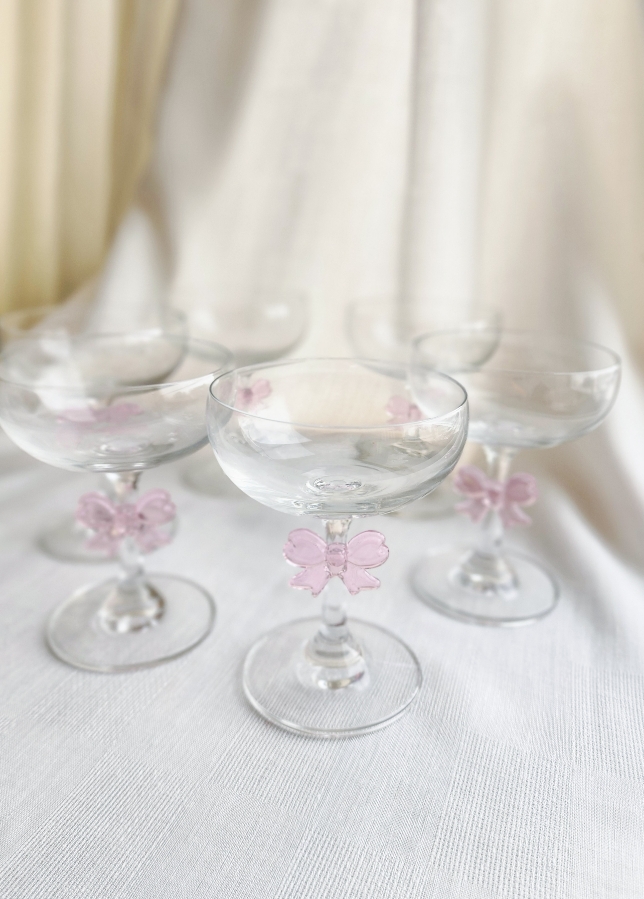 طقم كاسات تقديم شفاف مع فيونكة ٦ قطع