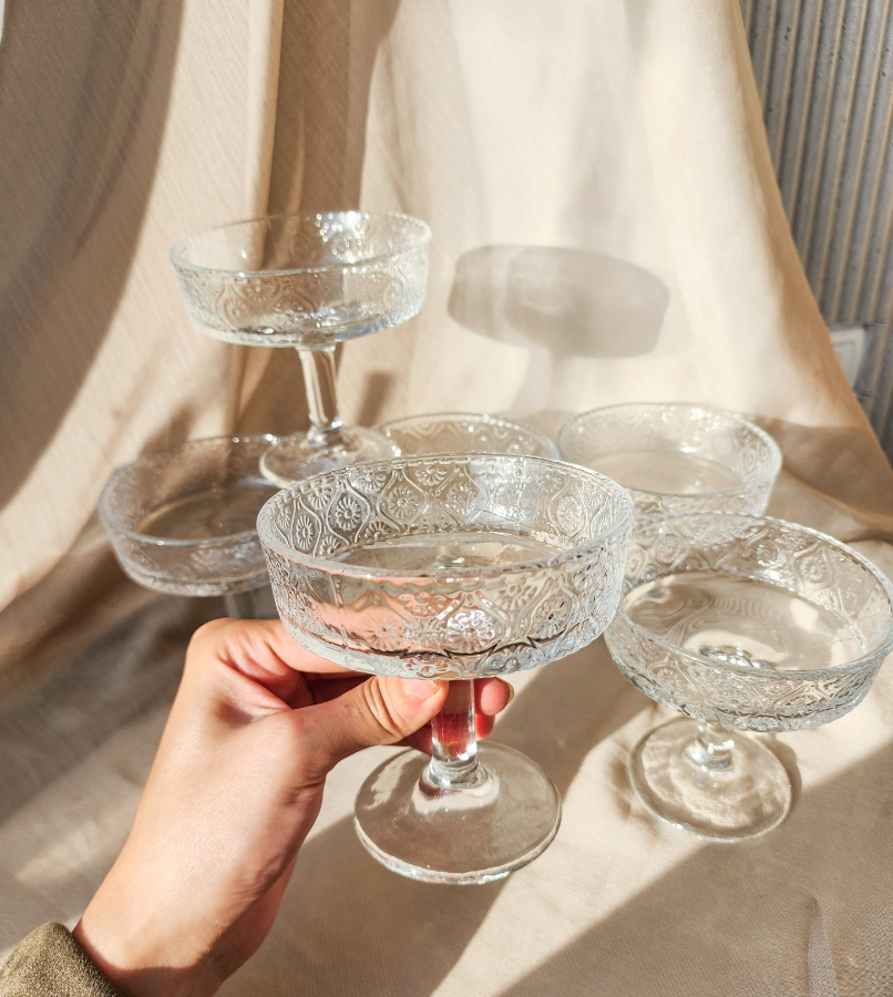 طقم كاسات حلو شفاف مع قاعدة 6 قطع