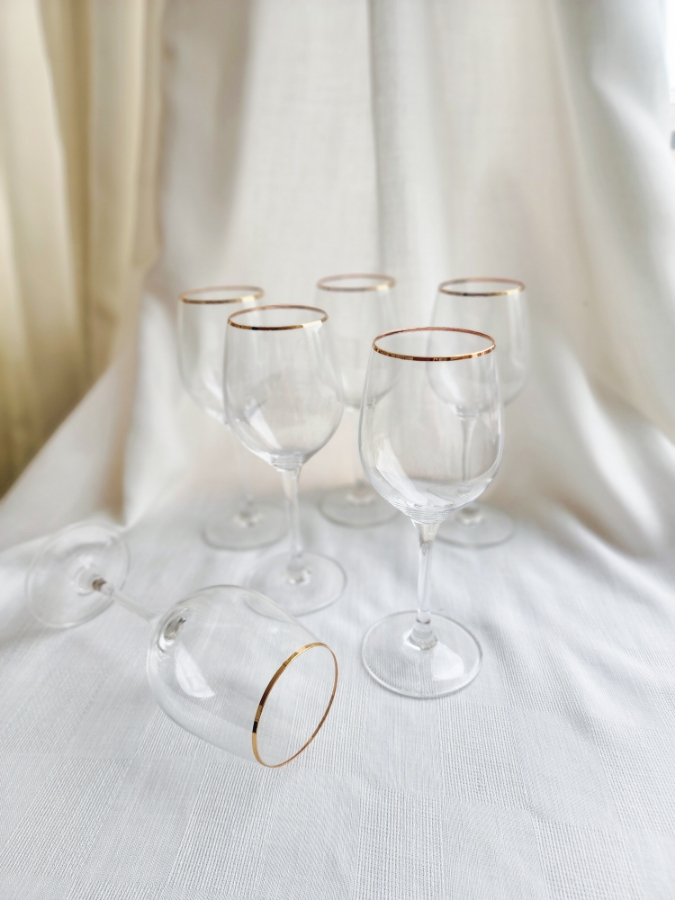 طقم كاسات عصير بقاعدة بحواف ذهبية ٦ قطع