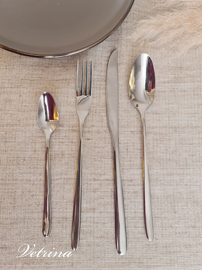 طقم ملاعق وشوك وسكاكين باللون الفضي