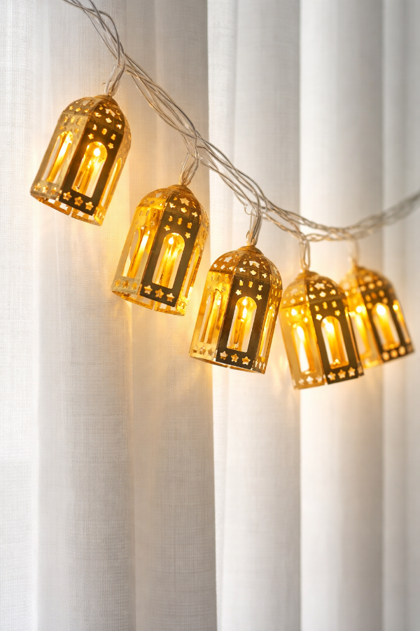 حبل انارة معدن فوانيس لون ذهبي حجم صغير