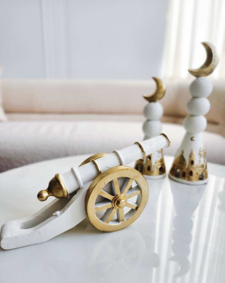 تحفة جبصين على شكل مدفع باللون الابيض