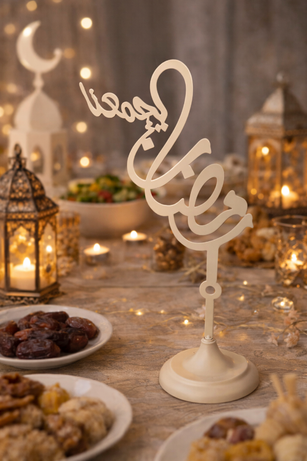 ستاند 'رمضان يجمعنا' حديد باللون البيج