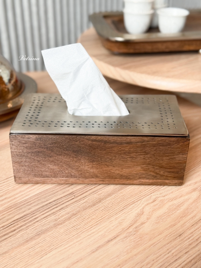 علبة محارم خشب مع معدن