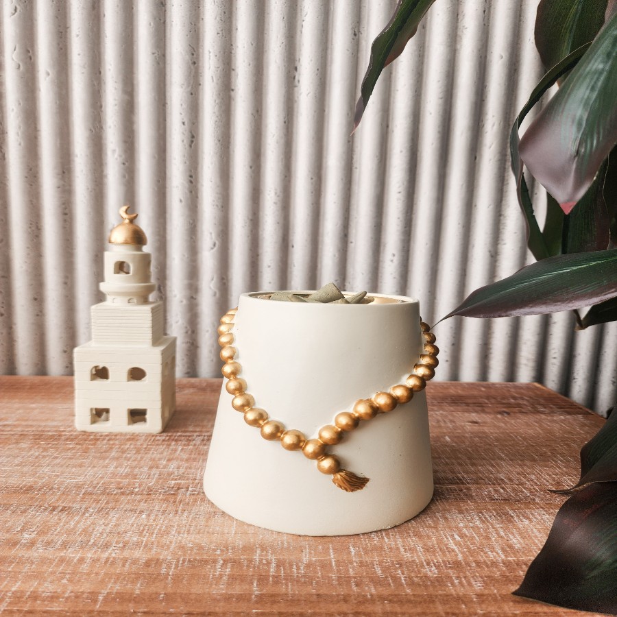 مبخرة على شكل مسبحة باللون البيج والذهبي