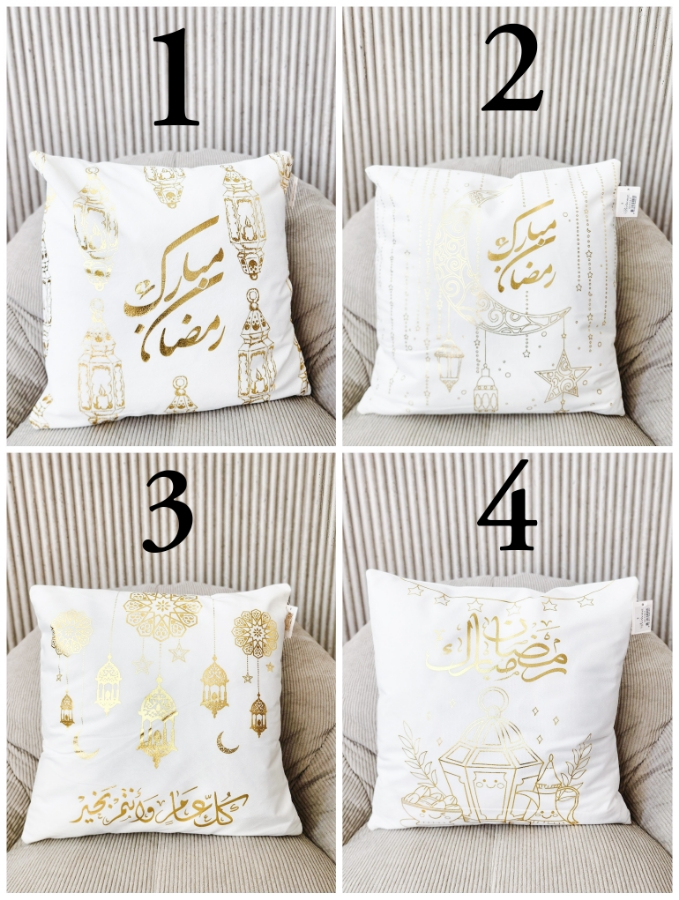 وجه مخدة بكتابات رمضانية باللون الذهبي