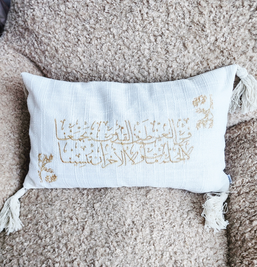 وجه مخدة مستطيل بتطريز ذهبي