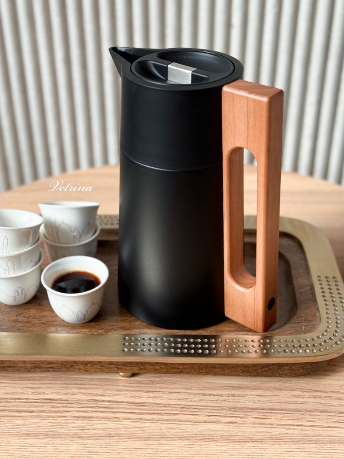 تيرموس قهوة لون اسود مع خشب لتر