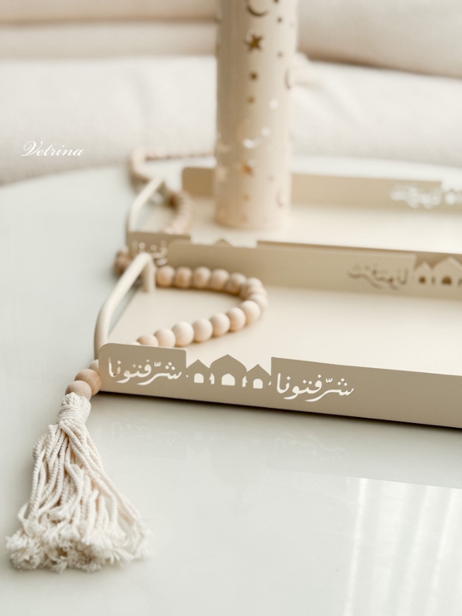 طقم صواني شرفتونا قطعتين حديد لون بيج