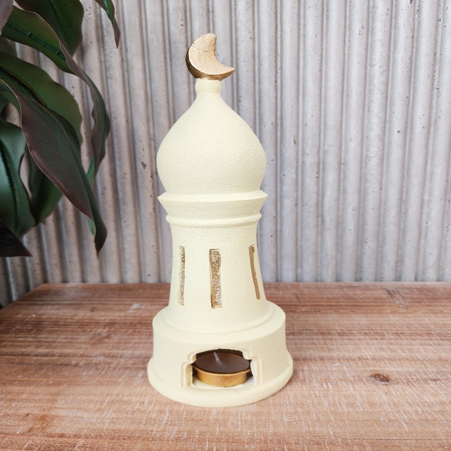 ماذنة مضيئة مع شمعة باللون الاصفر
