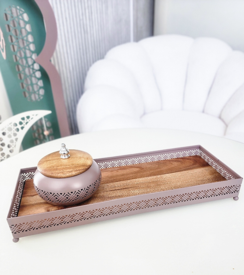 صينية مستطيلة خشبية مع حديد باللون البنفسجي