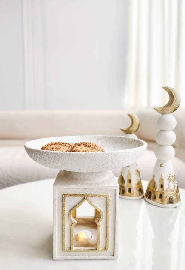مضيفة جبصين دائرية مع قاعدة مضيئة باللون الابيض