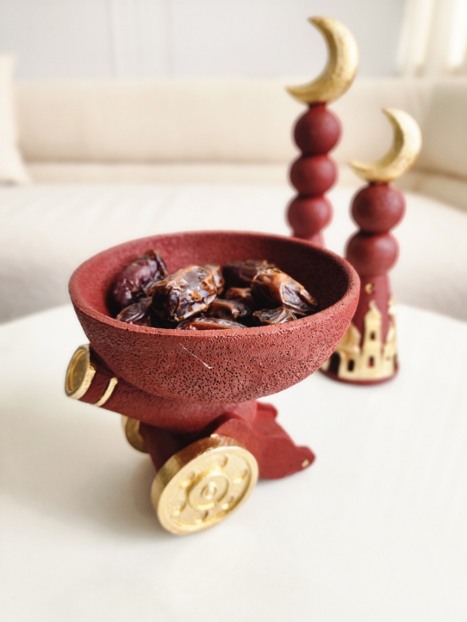 مضيفة جبصين على شكل مدفع رمضاني باللون الخمري