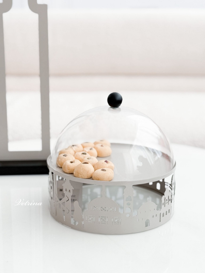 مضيفة حديد تصميم القدس مع غطاء شفاف لون رمادي
