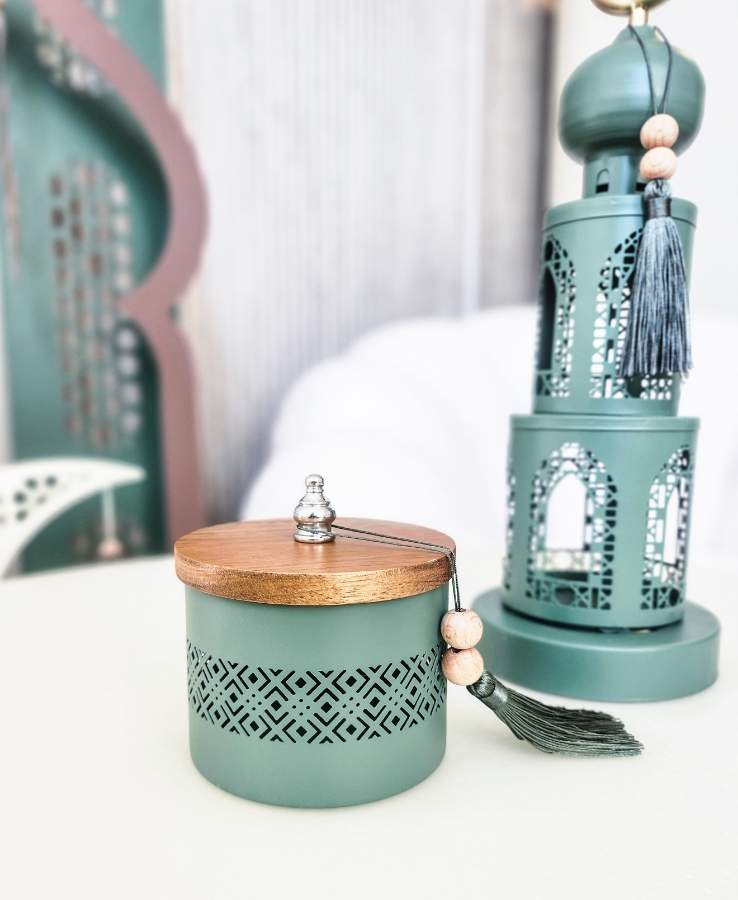 مضيفة رمضانية حديد مع غطاء خشب باللون الاخضر الحجم الصغير
