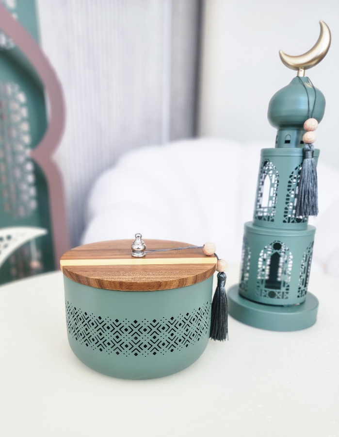 مضيفة رمضانية حديد و خشب باللون الاخضر حجم وسط