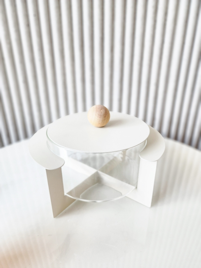 مضيفة زجاجية بقاعدة حديدية باللون الابيض