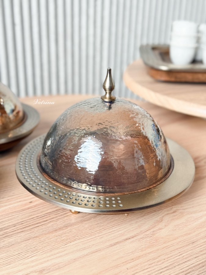 مضيفة قاعدة خشب غطاء زجاج حجم كبير