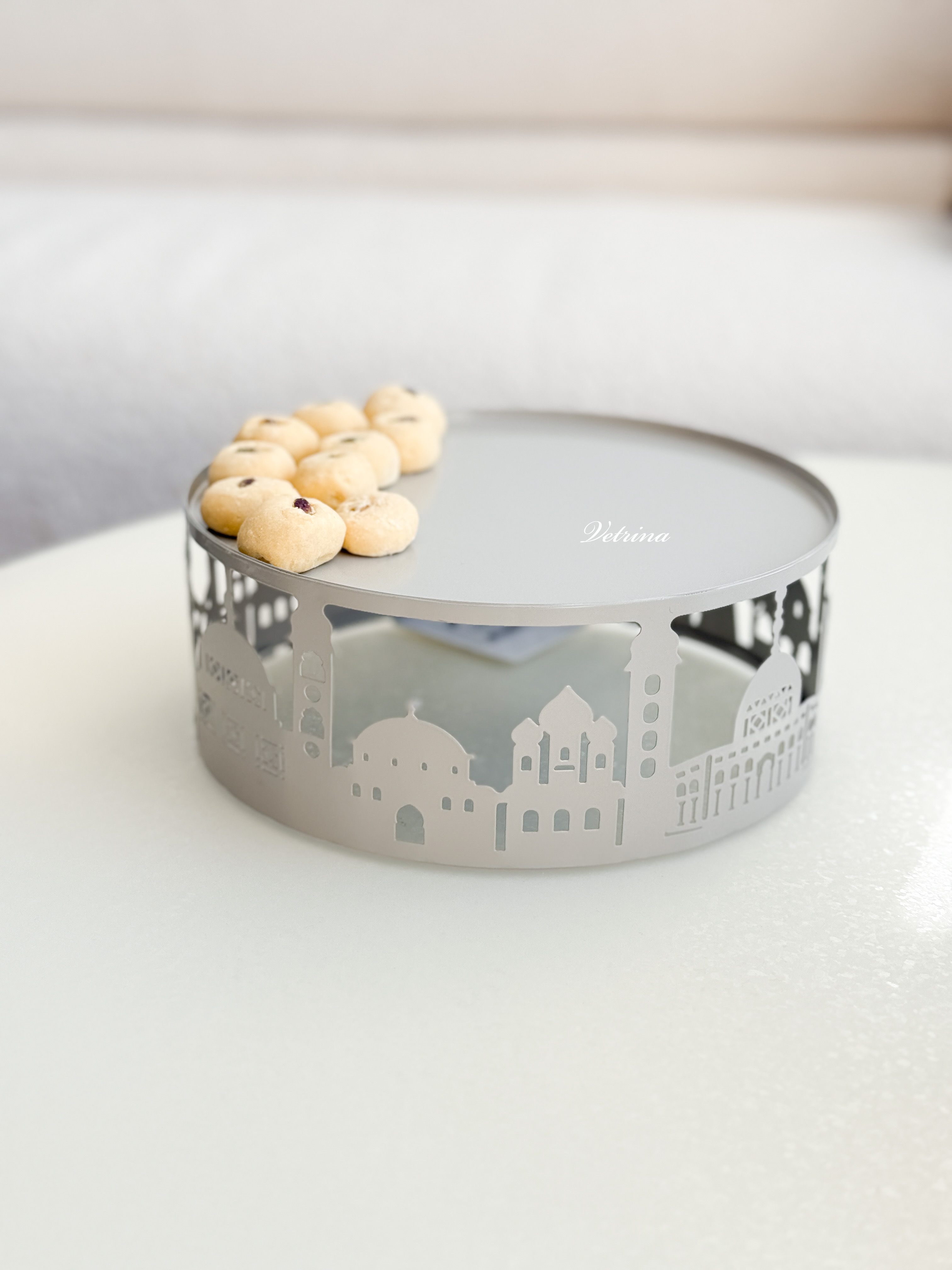 مضيفة حديد لون رمادي تصميم القدس بدون غطاء