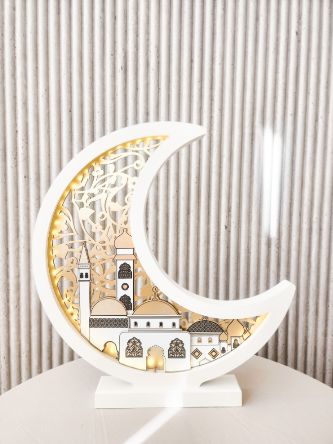 هلال المدينة مع زخرفة ذهبية مضيئ الحجم الصغير
