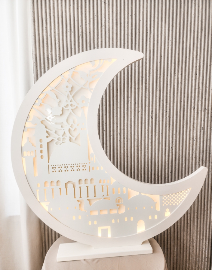 هلال المدينة مع زخرفة مضيئ باللون الاوفوايت الحجم الكبير