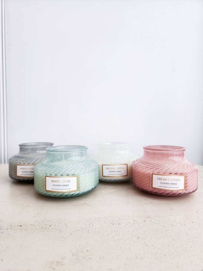 شمعة زجاجية معطرة بعدة الوان