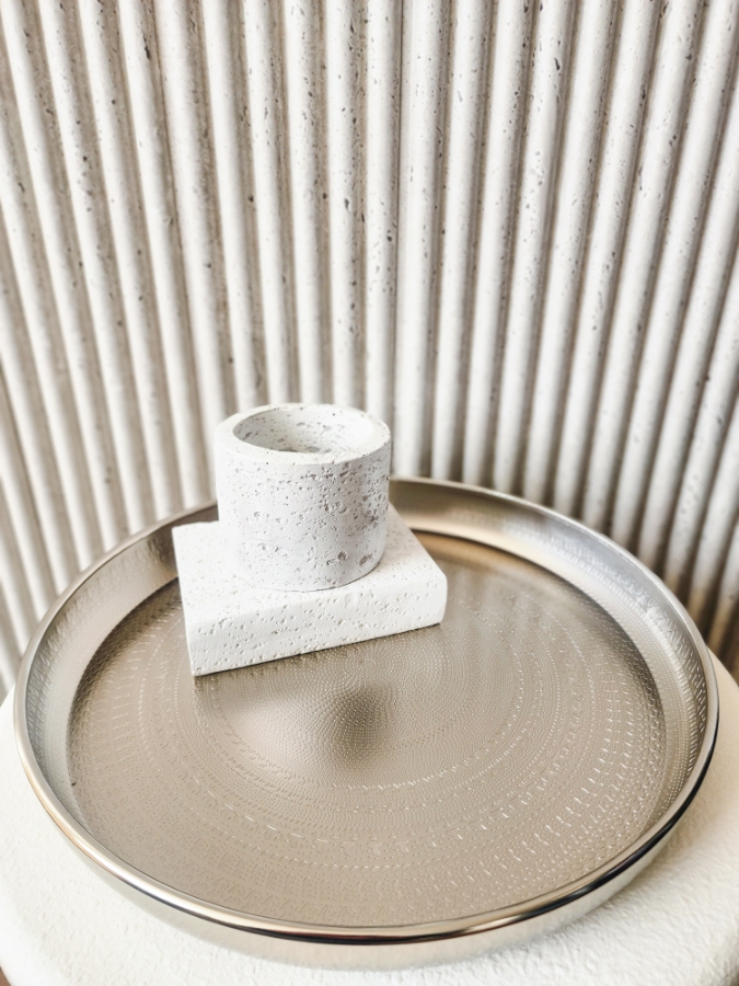 صينية دائرية معدن باللون الفضي