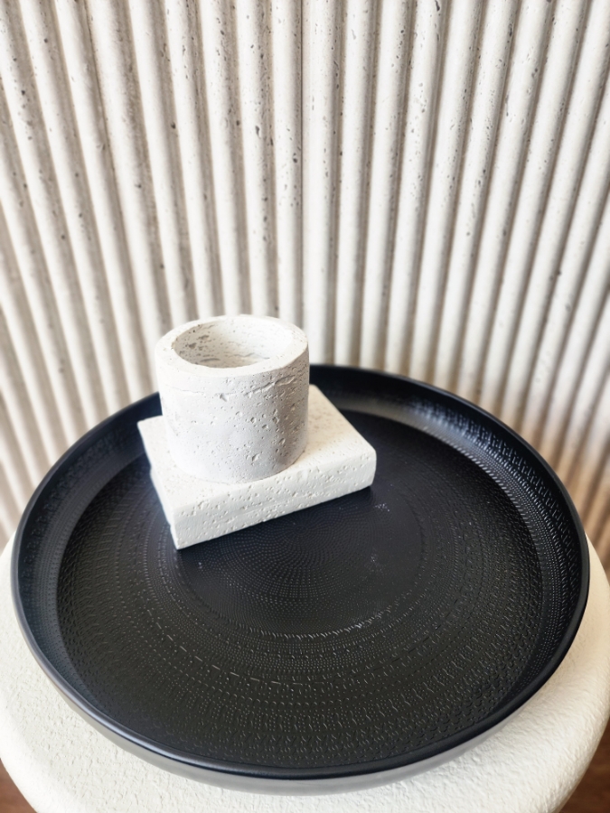 صينية معدن دائرية باللون الاسود