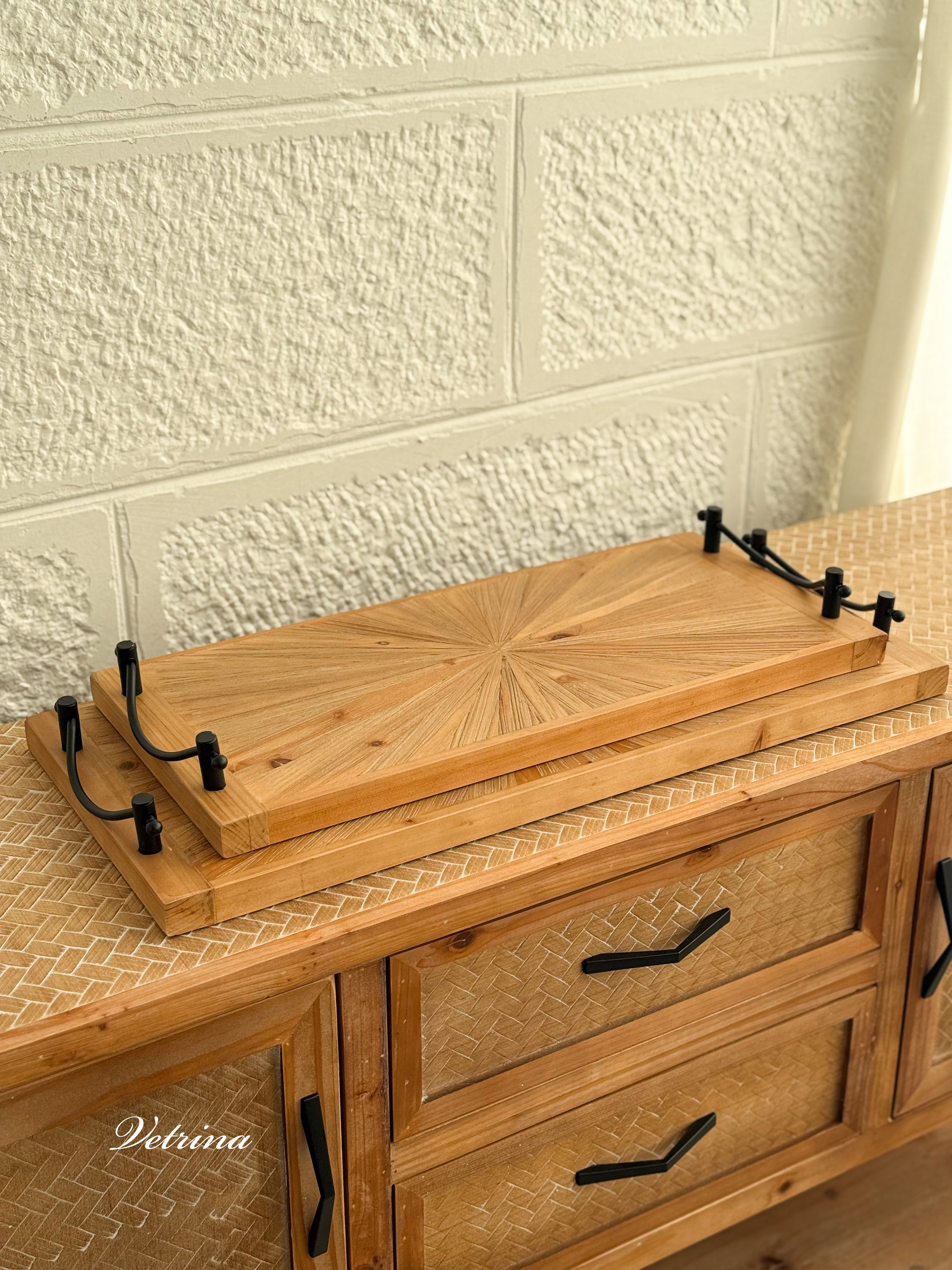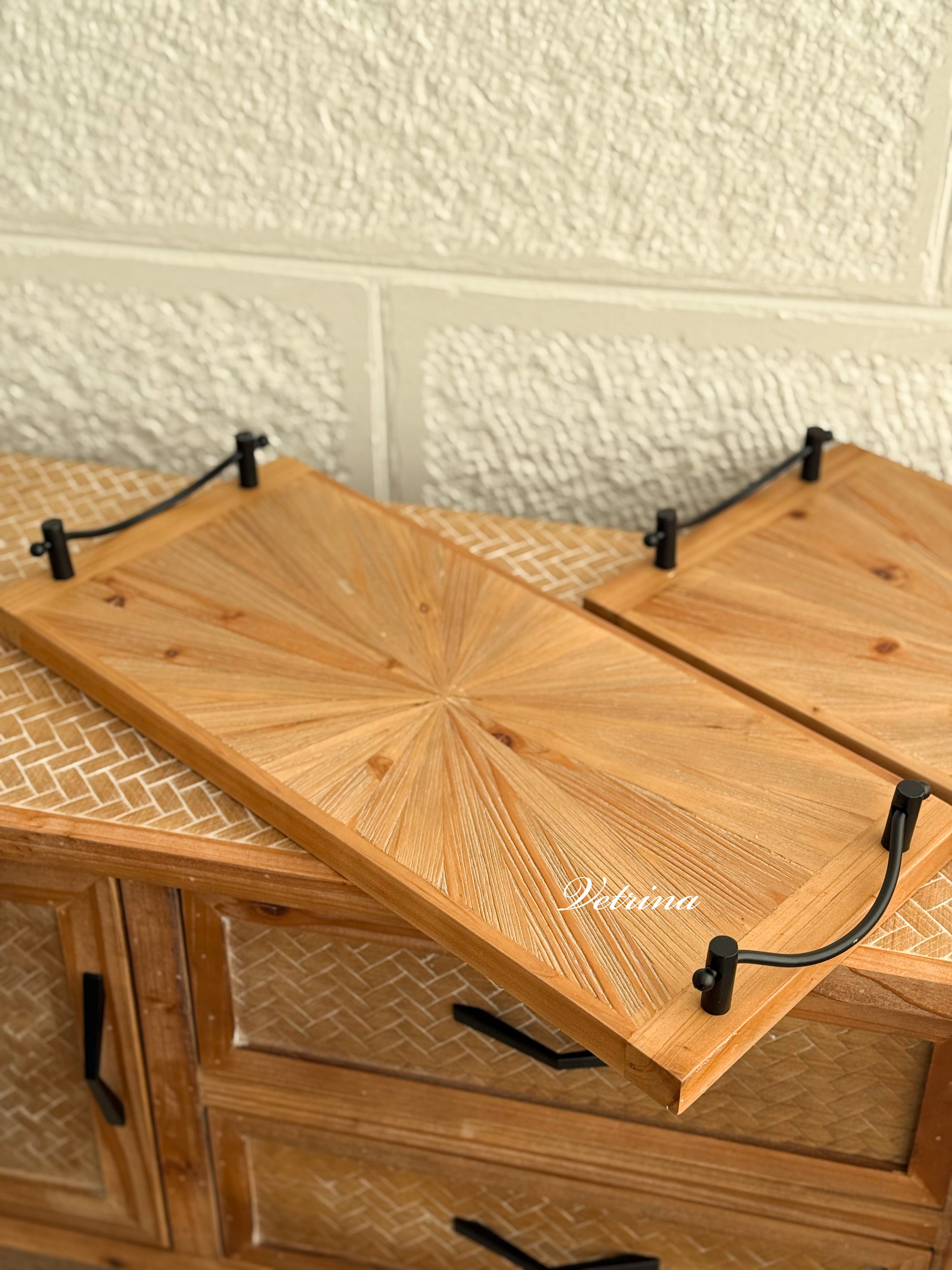 طقم صواني خشب ايد حديد قطعتين