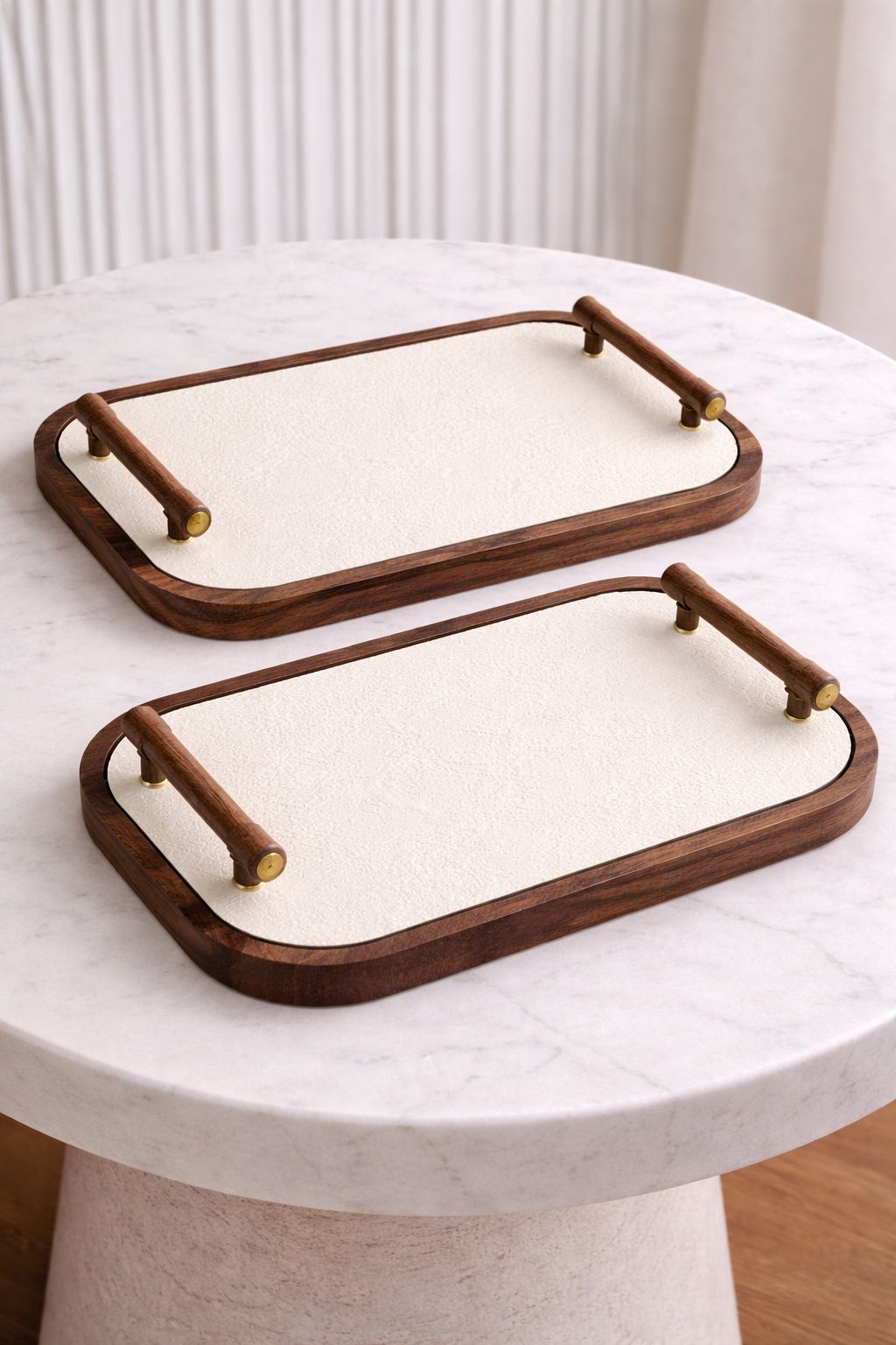 طقم صواني قطعتين مستطيل حجر مع ايدين خشب