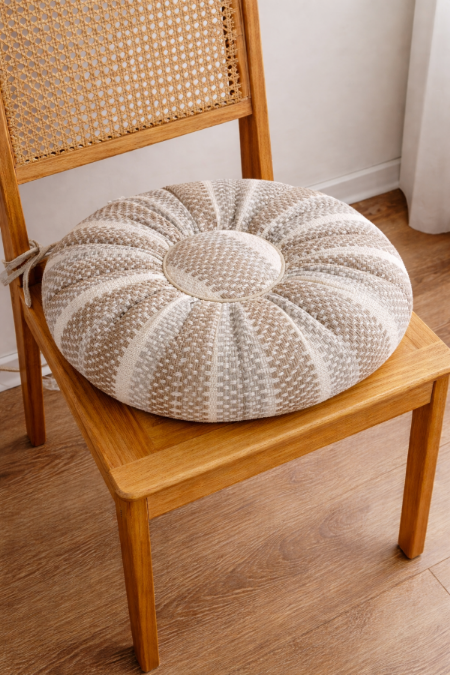 مخدة دائرية محشية مخططة باللون الرمادي قطر 40 سم