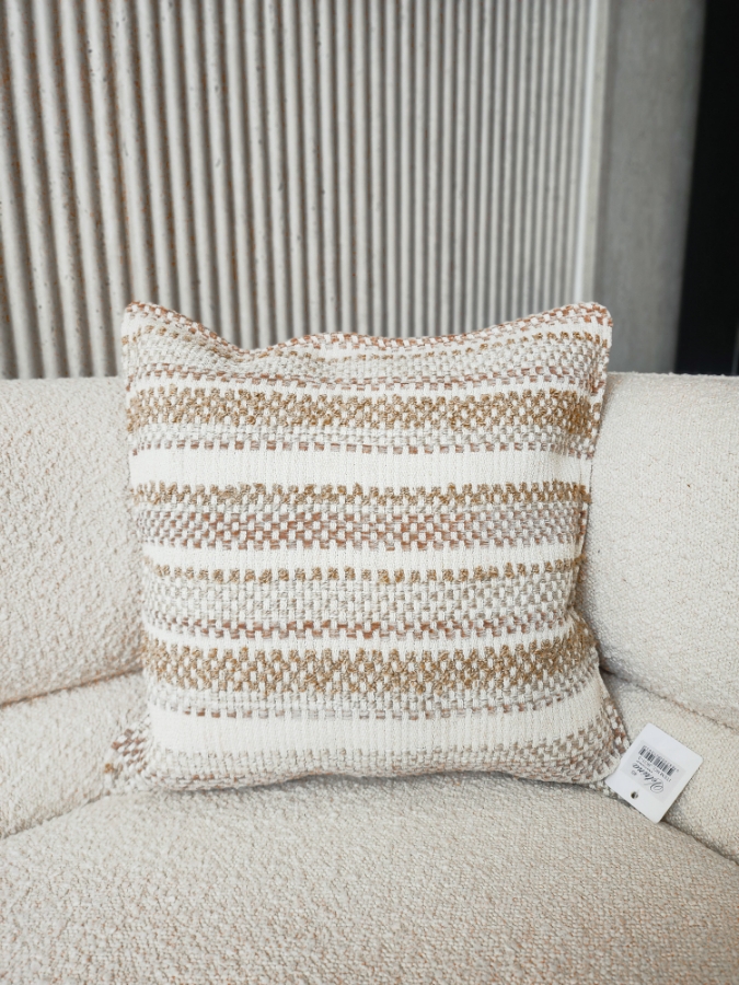 وجه مخدة مخطط باللون العسلي و السكني 42×42