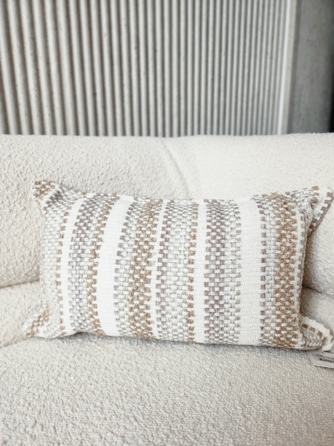 وجه مخدة مستطيل مخطط باللون العسلي والرمادي 28×50