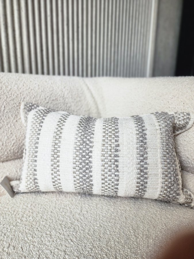 وجه مخدة مخطط باللون الرمادي مستطيل 28×50
