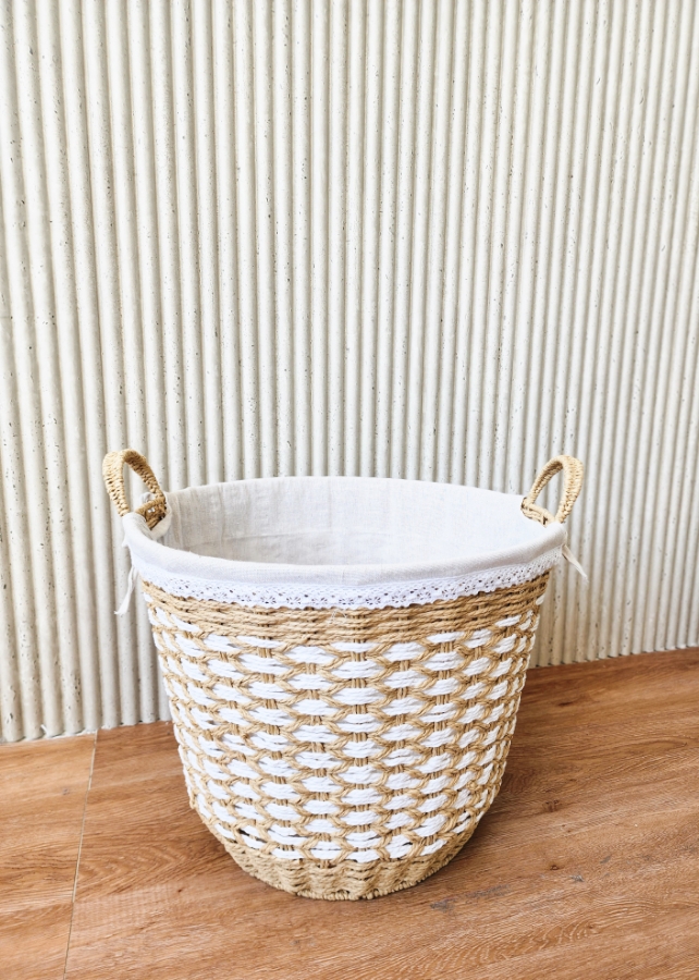 سلة قش باللون البني والابيض
