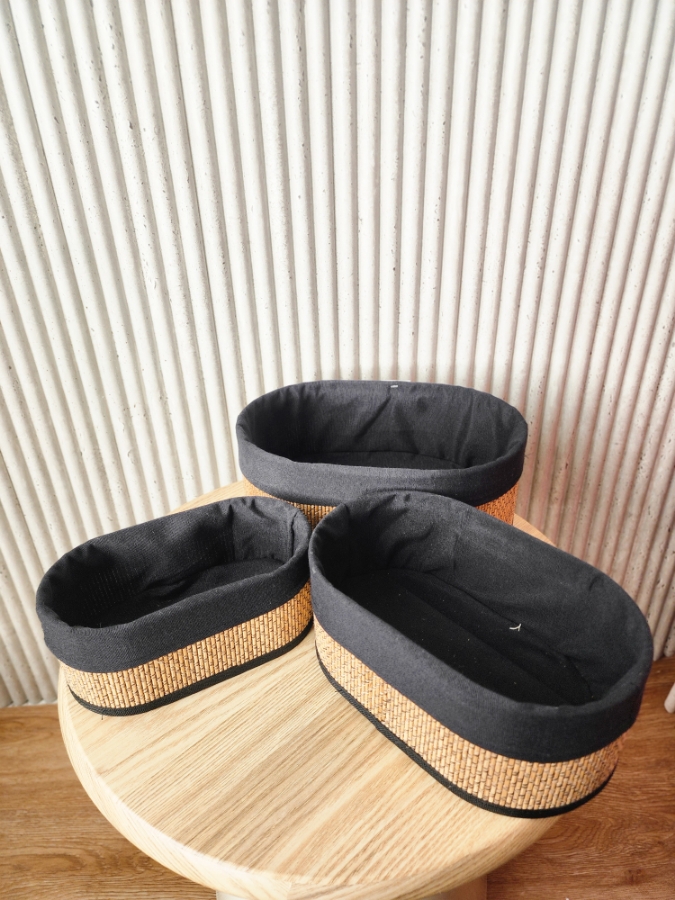 طقم سلات قش 3 قطع باللون الاسود والبني