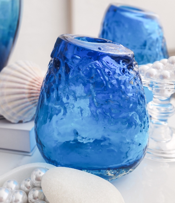 فازا زجاجية باللون الازرق ارتفاع 20سم