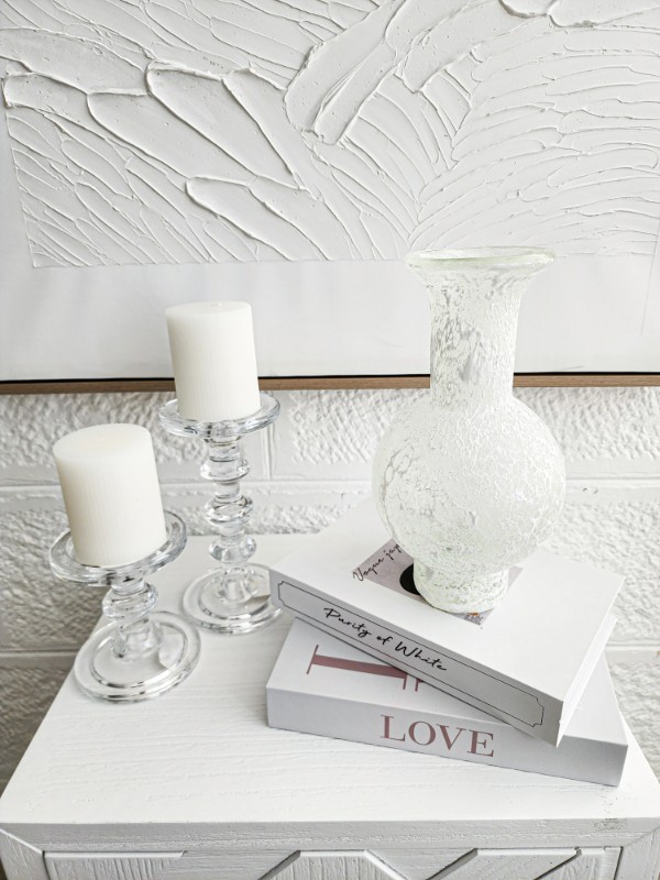 فازا زجاجية مونسة باللون الابيض ارتفاع 30سم