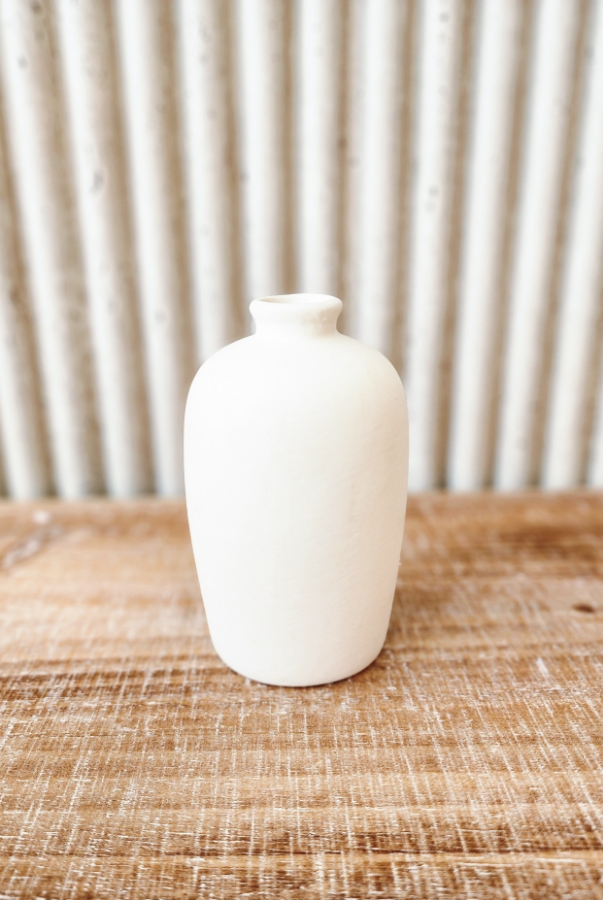 فازة حجرية صغيرة باللون الابيض