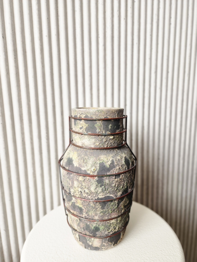فازة حجرية مع قاعدة حديد