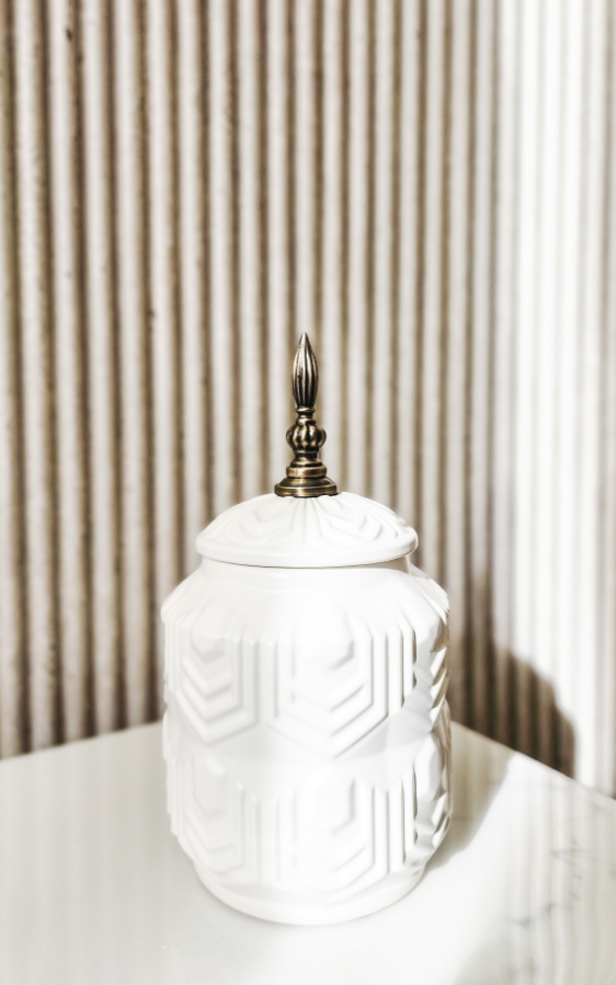 فازة حجري مع غطاء باللون الابيض حجم صغير