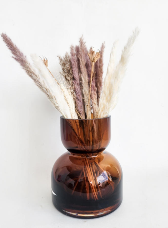 فازة زجاجية باللون البني طول ١٦ سم