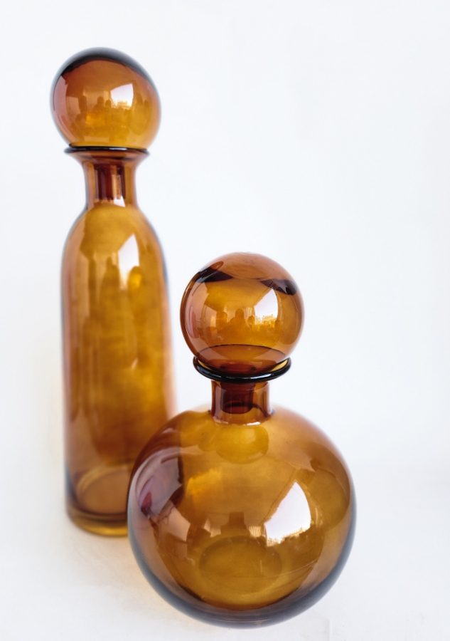 فازة زجاجية دائرية مع غطاء باللون البني طول ٢٥سم