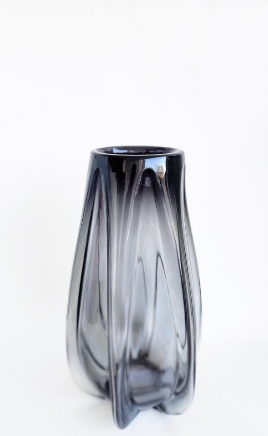 فازة زجاجية شفافة باللون الاسود طول٣٤ سم